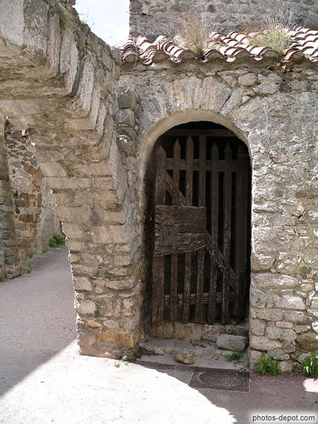 France, Languedoc Roussillon, Villefranche de conflensPorte donnant sur rue étroite