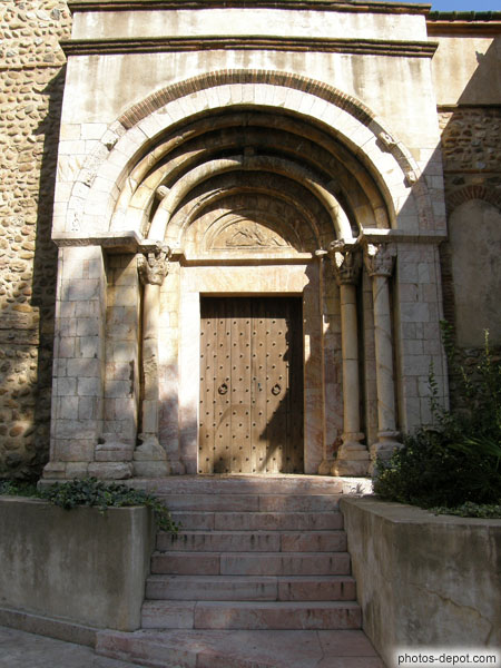 France, Languedoc Roussillon, ToulougesPortail roman église de Toulouges