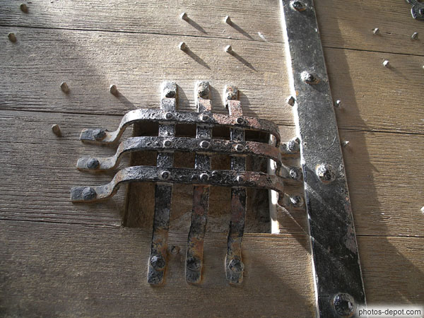 France, Normandie, Mont St MichelOuverture dans la porte principale protégée par une grille de fer forgé