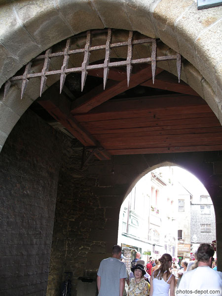 France, Normandie, Mont St MichelMachicoulis et herse de la porte dur roi ou était logé le contingent que le roi entretenait au mont