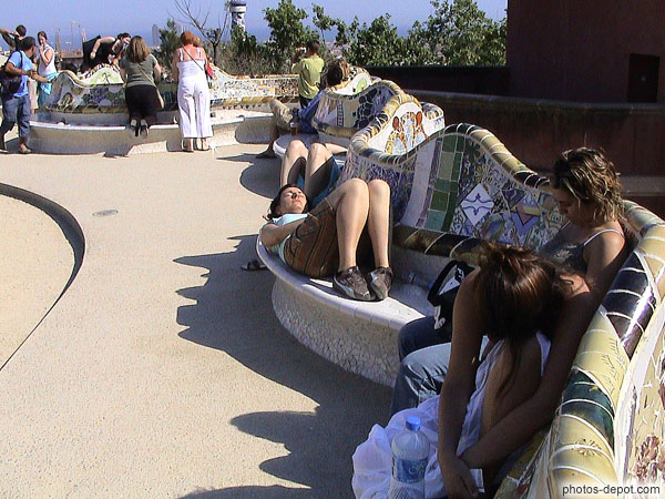 Espagne, BarceloneDétail des bancs ondulants construits par Gaudi