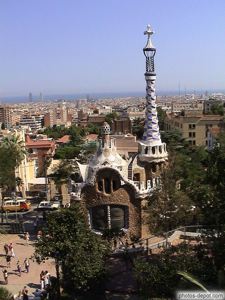 Espagne, BarcelonePavillon du concierge construit par Gaudi, Parc Guëll