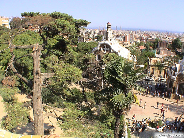Espagne, BarcelonePavillon du concierge et bancs ondulés contruits par Gaudi