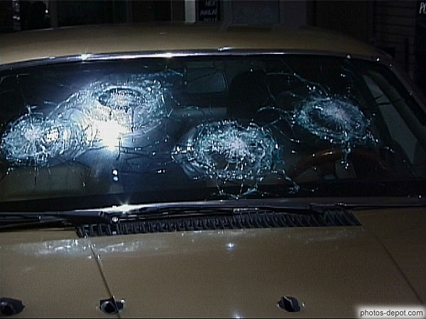 USA, New YorkImpacts de balle dans pare brise et coffre de voiture
