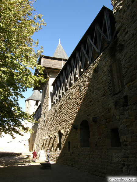 France, Languedoc Roussillon, Carcassonne, Chateau comtalMurs du chateau depuis la cour d'honneur