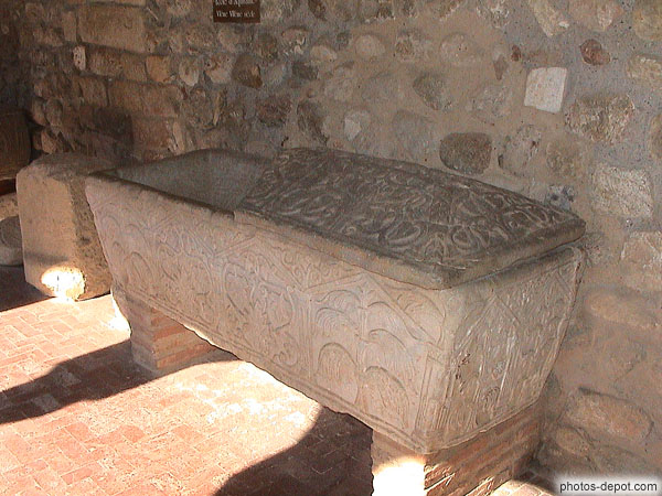 France, Languedoc Roussillon, ElneSarcophages de pierre sculptés de l'école d'Aquitaine