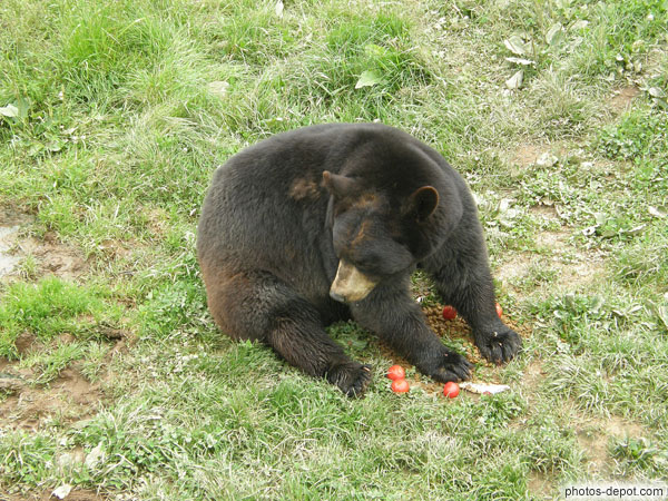 Canada, Gaspesie, BioparcOurs brun mangeant des tomates