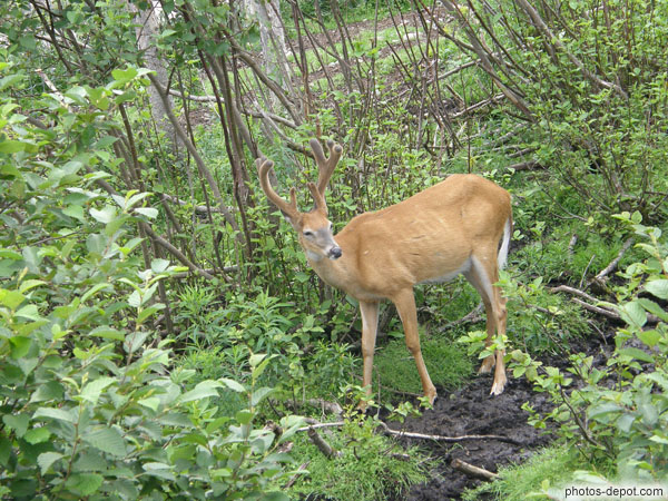 Canada, Gaspesie, BioparcJeunes bois recouverts de peau, Cerf de Virginie