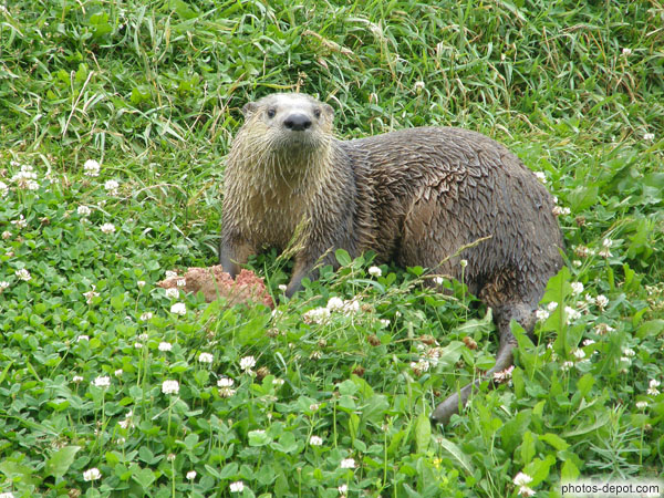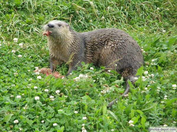 Canada, Gaspesie, BioparcLoutre de rivière déchicte la viante avec ses dents accérés