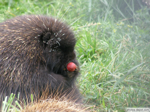 Canada, Gaspesie, BioparcPorc Epic d'Amérique mange une fraise
