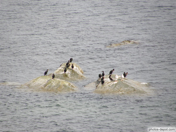 Canada, Gaspesie, GaspéCormoran à aigrette sur rochers au milieu de la mer
