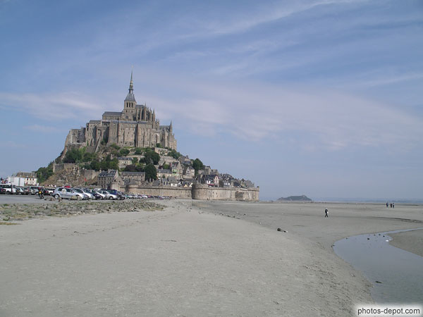France, Normandie, Mont St MichelLe mont, parking, la baie et Tombelaine dans le fond