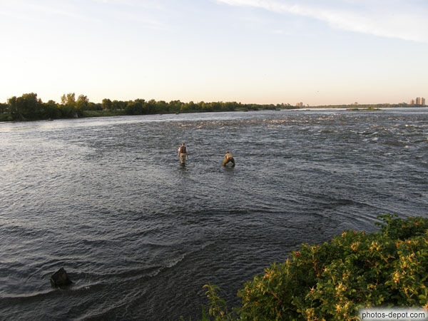Canada, Montreal, Canal LachinePêcheurs en bottes dans les rapides