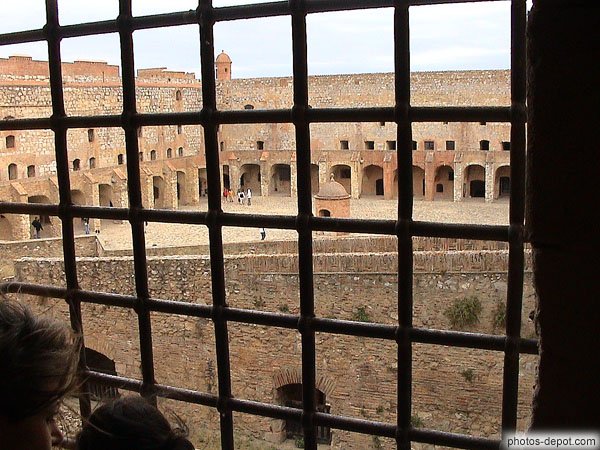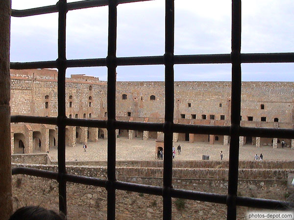 France, Languedoc Roussillon, SalsesPlace d'armes vue d'une fenêtre de la tour de la forteresse