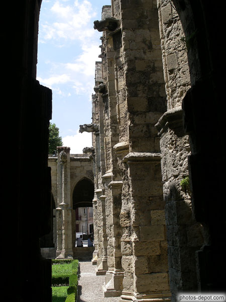 France, Languedoc Roussillon, NarbonnePiliers de la cathédrale donnant sur le cloître