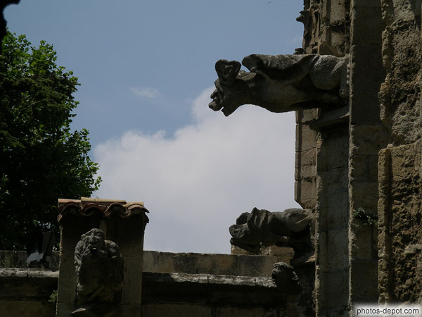 France, Languedoc Roussillon, NarbonneSurprenantes gargouilles moyenageuses surmontant le cloître