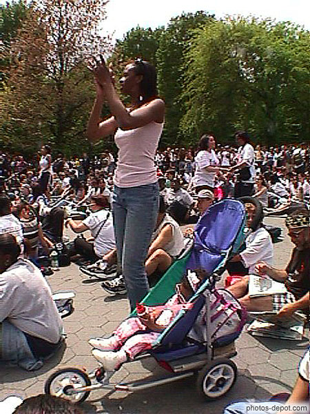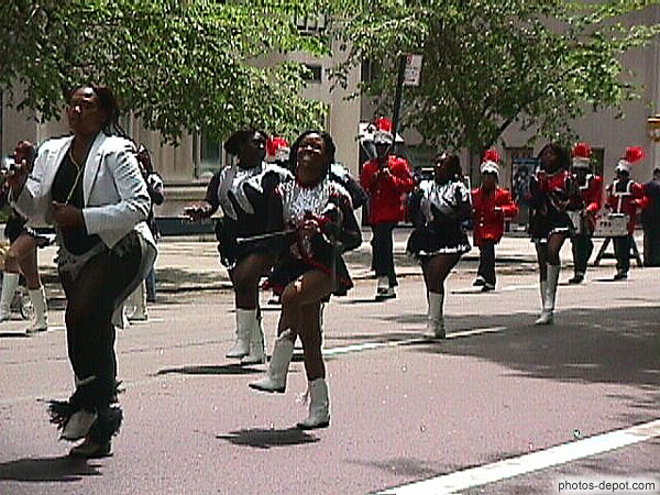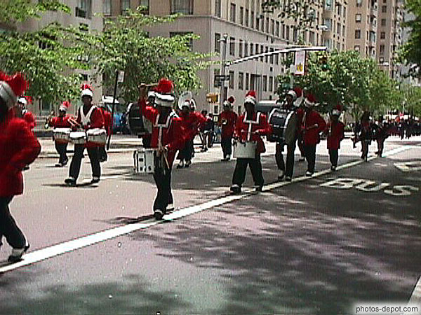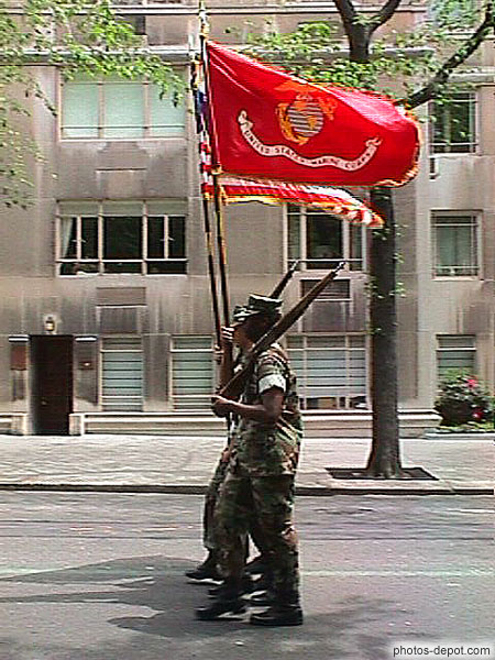 USA, New YorkDéfilé de soldats au drapeau rouge