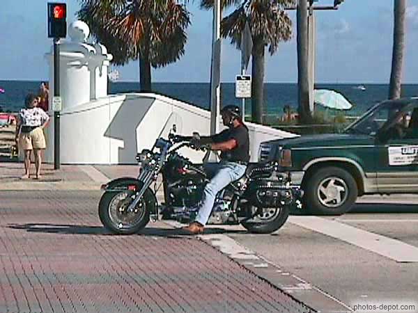USA, Floride, Fort LauderdaleHarley Davidson au feu rouge
