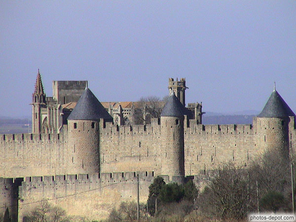 France, Languedoc Roussillon, CarcassonneRemparts et église de Carcassonne
