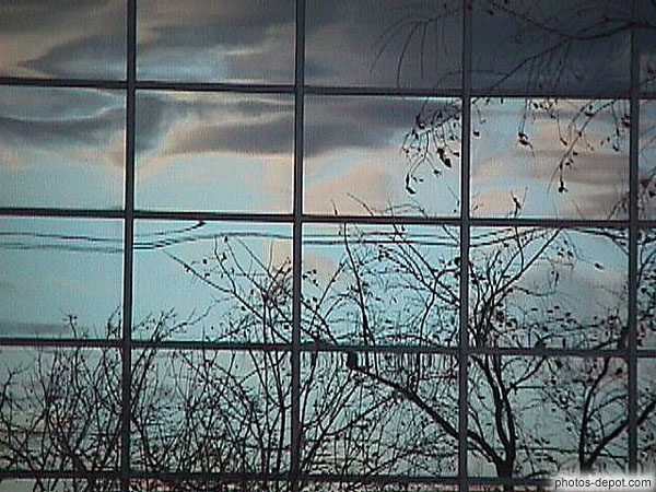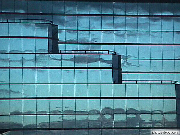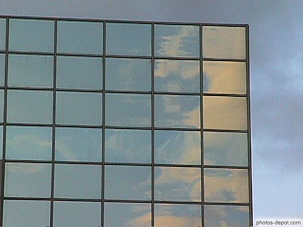 Ciel se reflétant dans les vitres du gratte-ciel, Canada, Quebec
