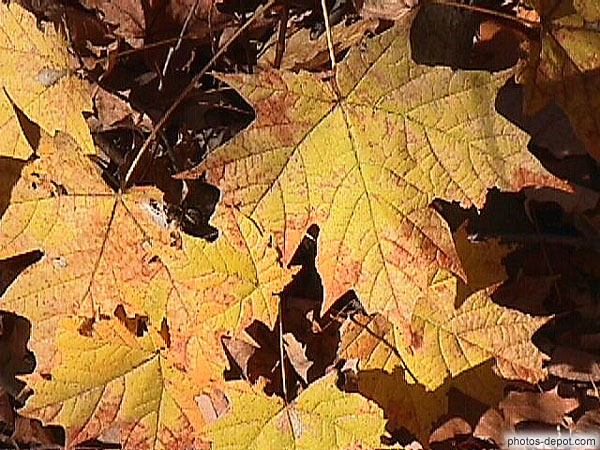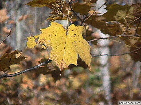 Feuilles d'érable jaunes d'automne, Canada, Quebec
