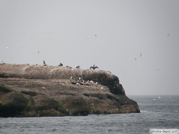 Cormorans et goélands sur rocher, Canada, Gaspesie, Ile Bonaventure