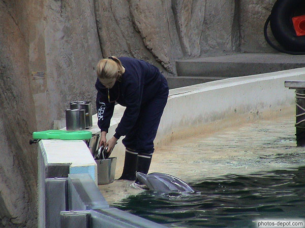 Femme nourrit le dauphin, Belgique, Bruges, Dolphinarium