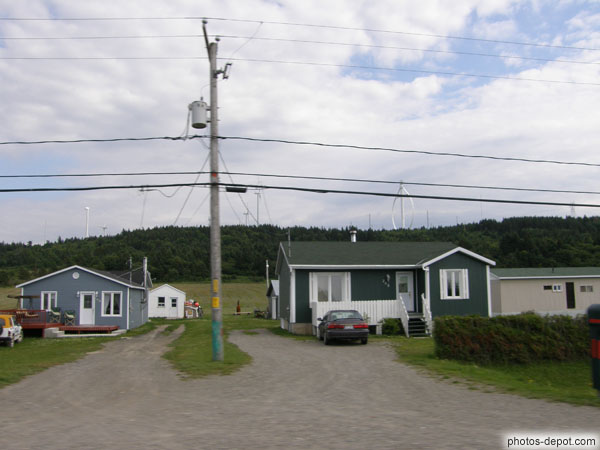 Derrière les maisons, Eole, l'éolienne géante de Cap Chat, Canada, Quebec, Cap Chat