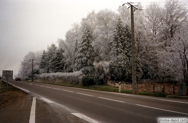 Arbres gelés le long de la route, France, Bretagne