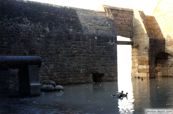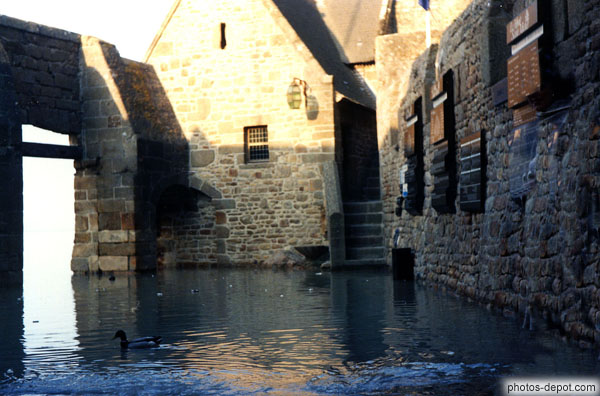 Entrée du Mont St Michel envahi par la marée, France, Bretagne
