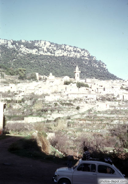Fiat 500 devant le village adossé à la colline, Inconnu