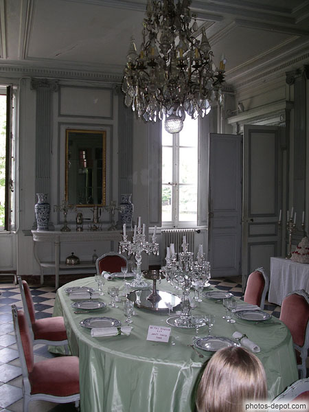 Salle à manger. Lustre en cristal de Bohème du XVIIIe, France, Centre, la ferté St Aubin