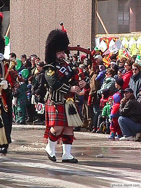 Soldat uniforme irlandais kilt et cornemuse, Canada, Quebec, Montreal, fête de St Patrick