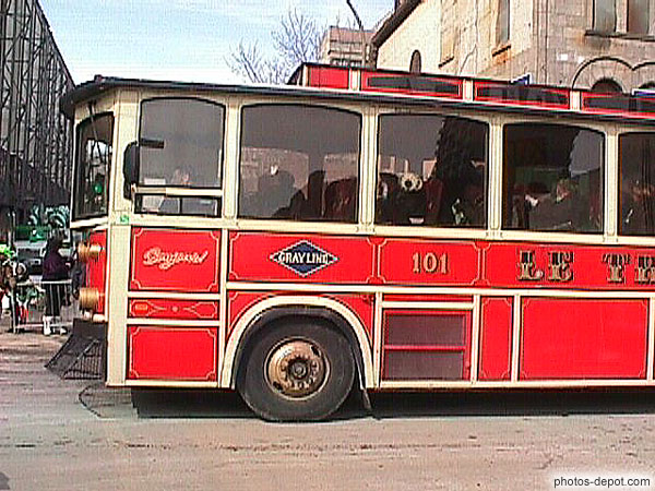 Bus rouge en forme de tramway, Canada, Quebec, Montreal, fête de St Patrick
