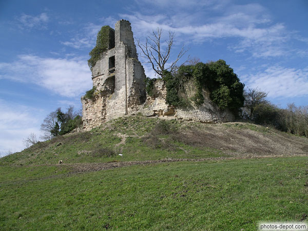 âne devant la ruine du chateau, France, Aquitaine, Gurson
