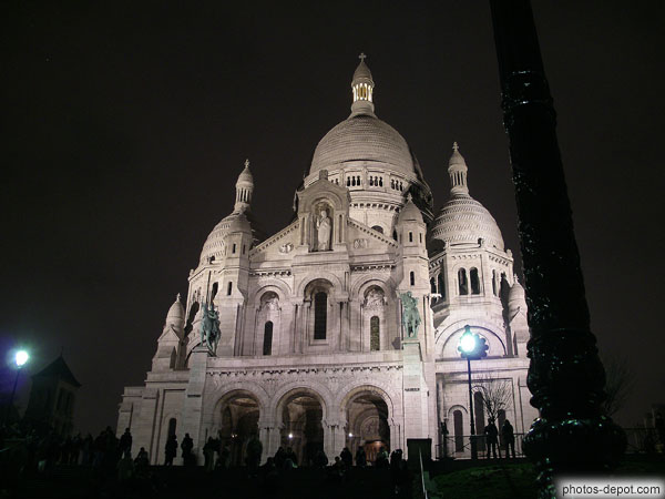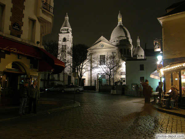 Basilique vue de la place du Tertre, la nuit, France, Paris, Montmartre, Basilique du Sacré Coeur