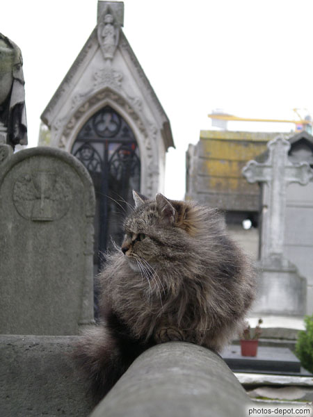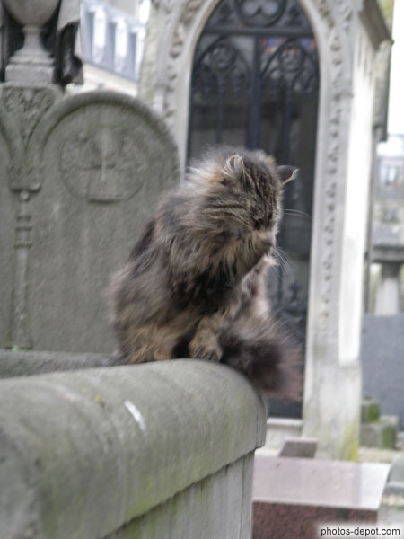 Toilette du chat dans le cimetière, France, Paris, Montmartre, cimetière