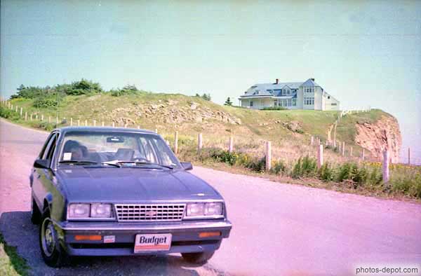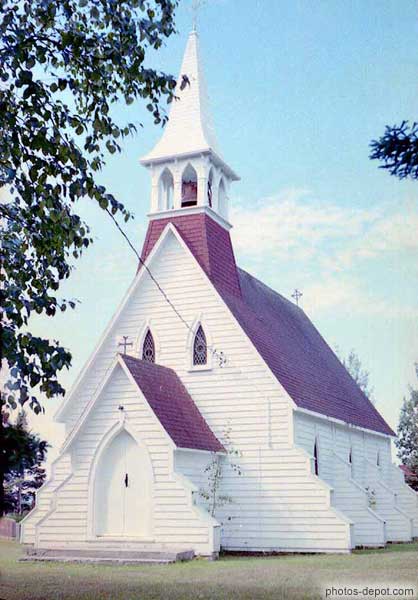 Chapelle de bois blanc au toit rouge, Canada, c么te est