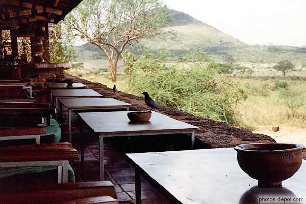 Buissons et terres désèchées devant les monts, Afrique, Kenya