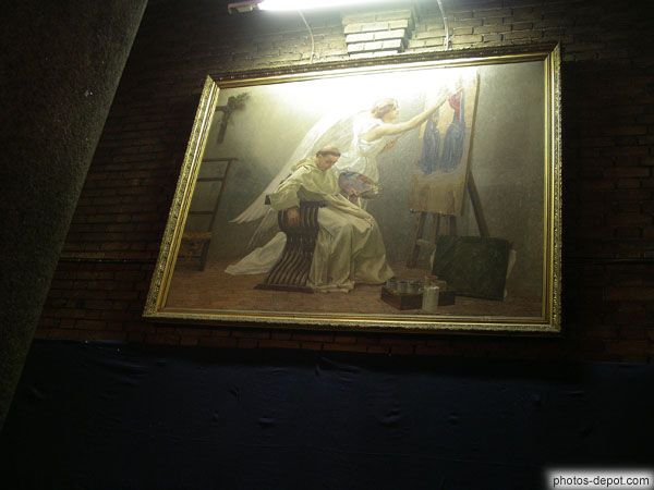 Image de la muse : ange terminant le tableau inachevé du moine endormi, église Saint-Michel des Batignolles, France, Paris