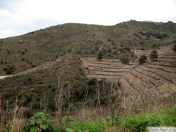 Colline et plantations en escalier, France, Languedoc Roussillon, Banyuls