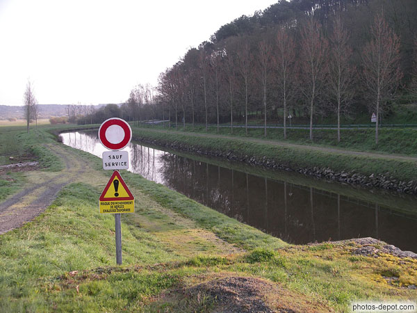 Interdit sauf service - risque d'effondrement de berges, chaussée déformée, France, Bretagne