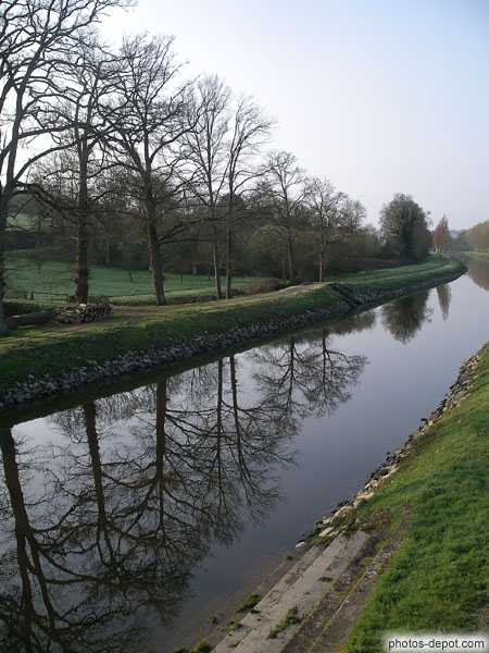 Reflet des arbres dans le canal de Nantes à Brest, France, Bretagne