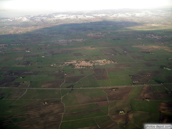 Autoroute et village vue d'avion, France