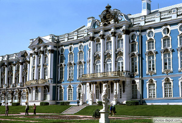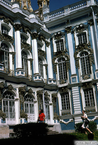 Palais d'hiver aux murs bleus et garnitures dorées, Russie, St Petersbourg