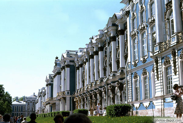 Palais d'Hiver aux murs bleus et colonnes blanches, Russie, St Petersbourg