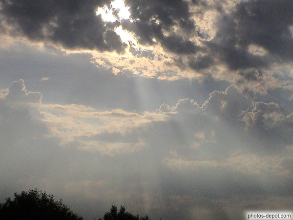 Rayons du soleil entre les nuages, France, Normandie, Mont St Michel