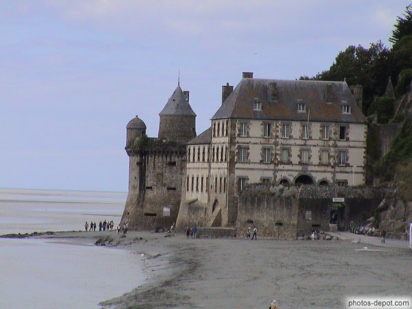 Maison et tour ouest du mur d'enceinte du Mont St Michel, France, Normandie, Mont St Michel
