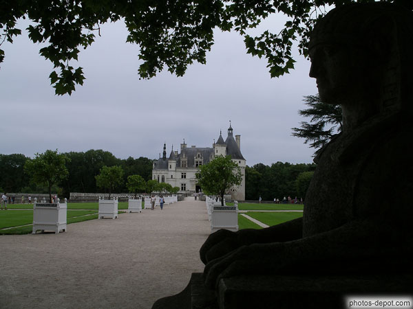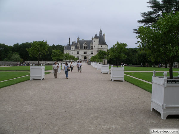 Allée centrale vers le chateau, France, Centre, Chenonceaux
