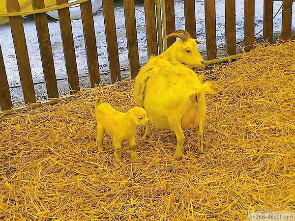 Mère et jeune chèvre Mohair, Belgique, Bruxelles, ferme de Bécassine